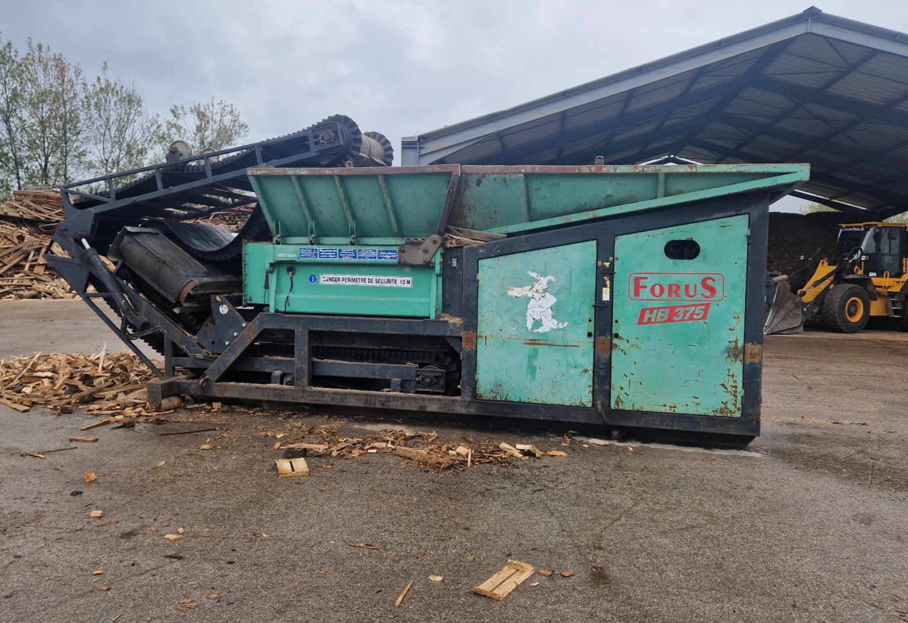 Broyeur lent FORUS HB 375 sur berce, DIB, Troncs, souches, bois de démolition, bois de déchetteries, palettes, déchets verts ...